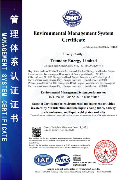A Trumony Aluminum Limited está empenhada em manter os mais altos padrões internacionais de qualidade e confiabilidade para os nossos componentes de refrigeração líquida.